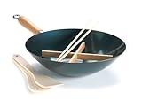 - The Set Includes: 12 Inch Pre-Seasoned Wok, Lid, Steaming Rack, Spatula, Paddle And Cooking Chopsticks
